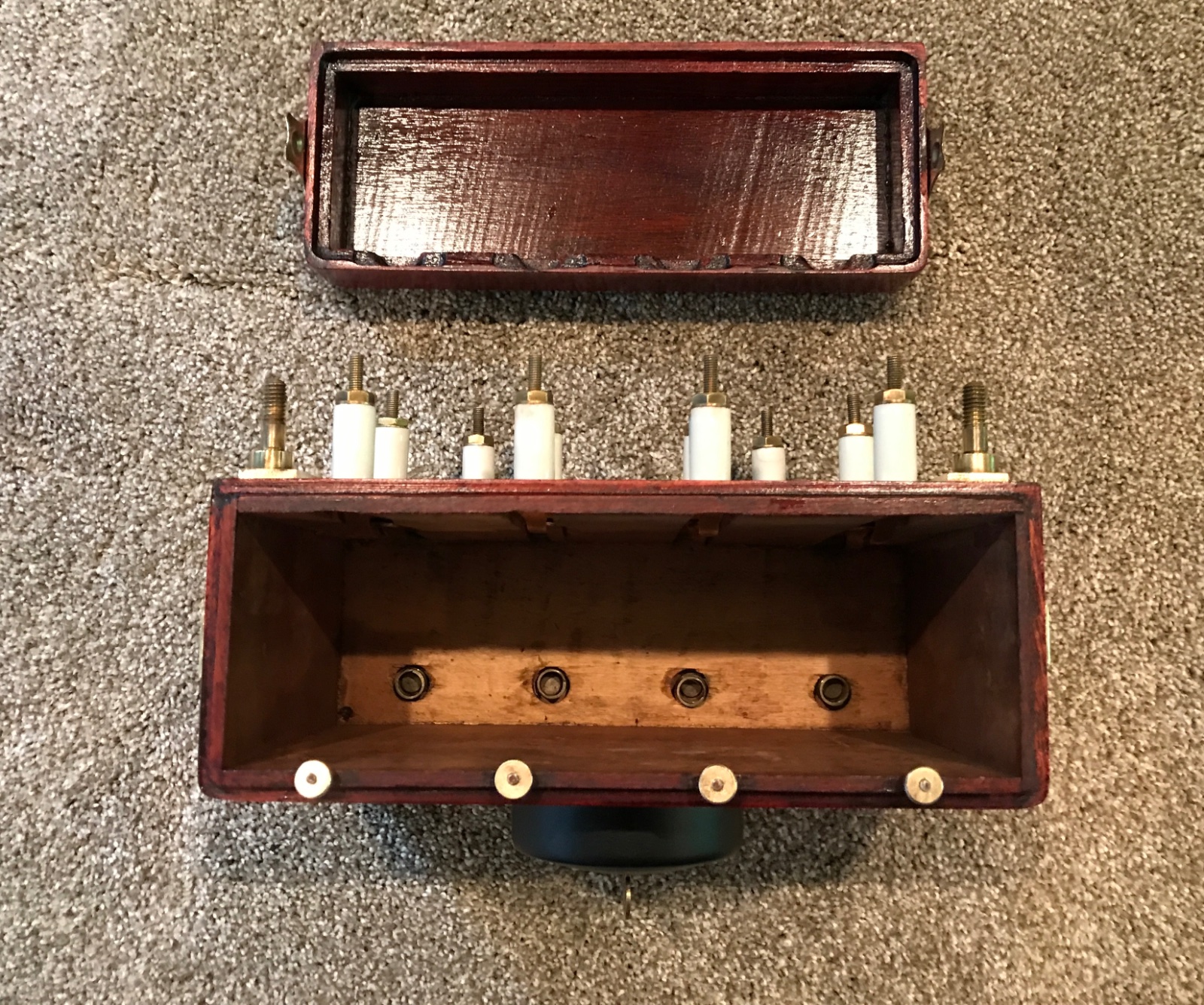 Very nice coilbox. The late RV Anderson researched the wood type and early coil boxes used 113 + year old Cuban mohogany that is no longer available. Hence the beautiful graining.