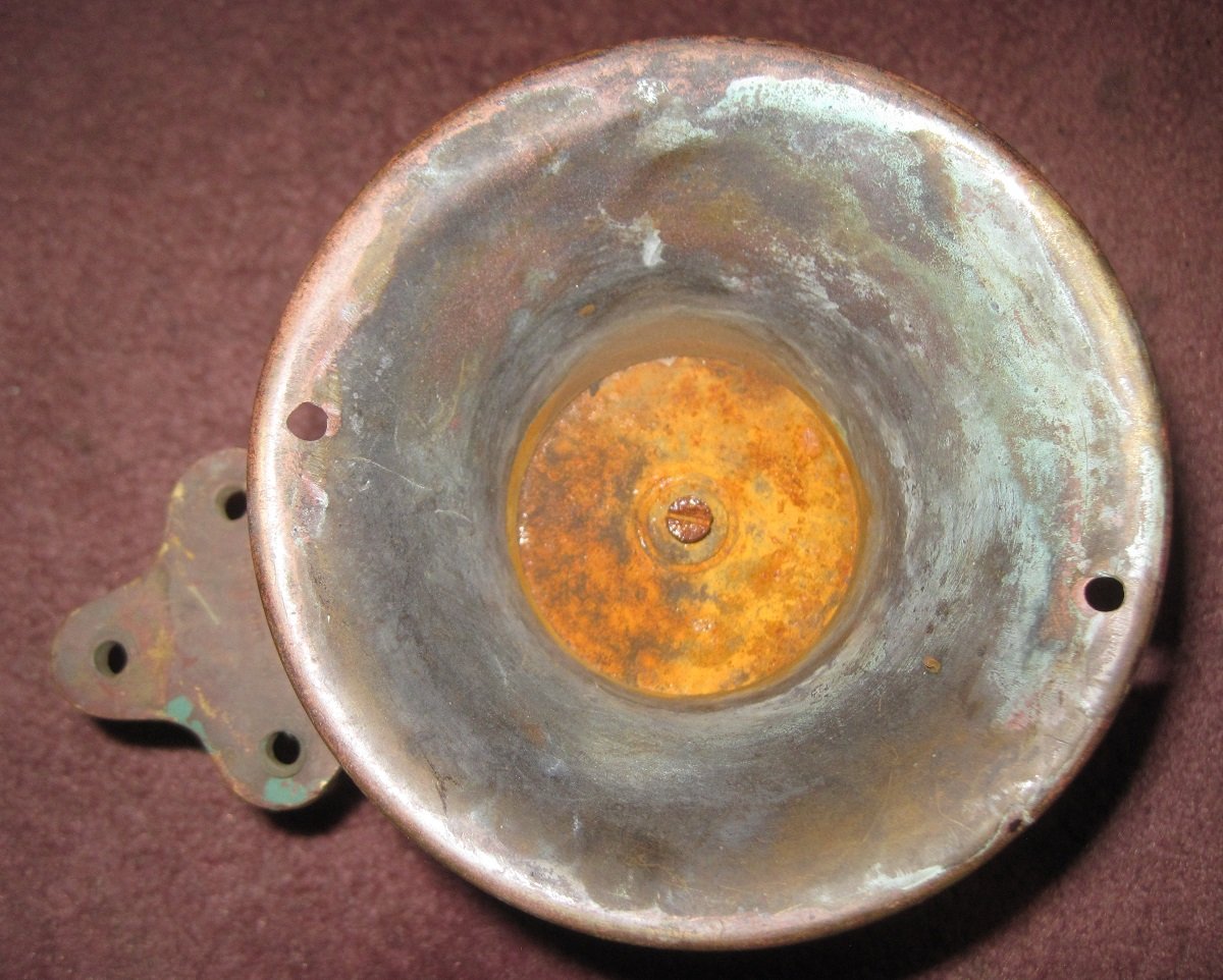 FS: One "MESCO" brass electric klaxon horn. Needs a total restoration, there are holes drilled and some fatigue cracks in the bell, and the mechanism has some badly rusted parts. I'm never going to get around to restoring this one, so here it is. Asking $10 not including shipping.