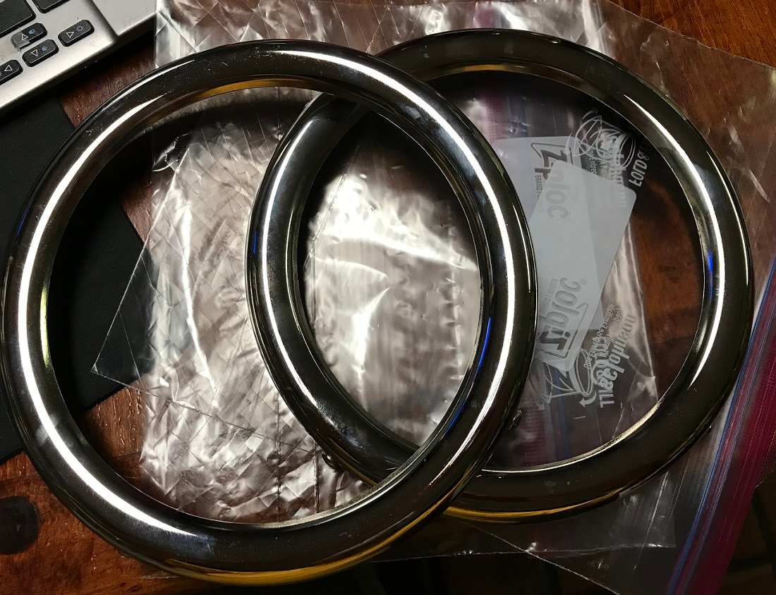 For the uninhibited, a pair of New Old Reproduction Stock chrome plated steel rims. $50 for the pair plus shipping PayPal to Family/Friends or check
