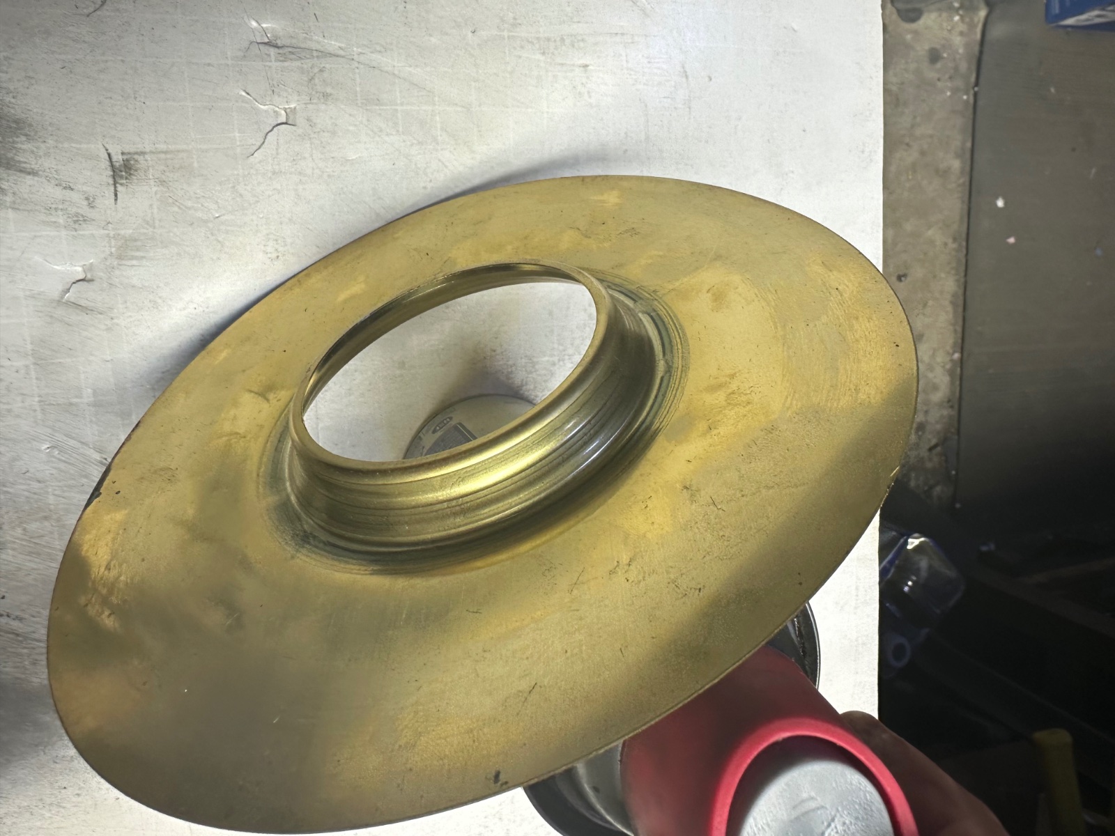 New spinning for Brown 75 and Possibly 78 tail lamp Red Lense. Originally lenses were spun in place and the rim often split. These have the retaining rim spun and the lense is installed from the inside and epoxied in place . $83 each plus postage Larry Debaugh 4103361728