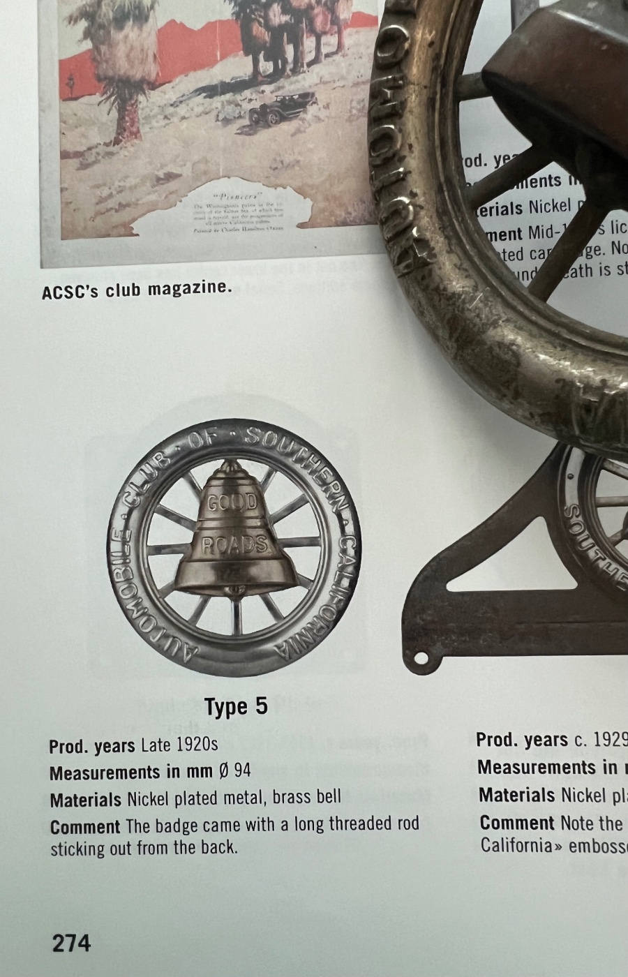 Late 1920's (type 5) AAA of Southern California badge. Detailed description from "The World of Car Badges" by Jan Särnesjo.