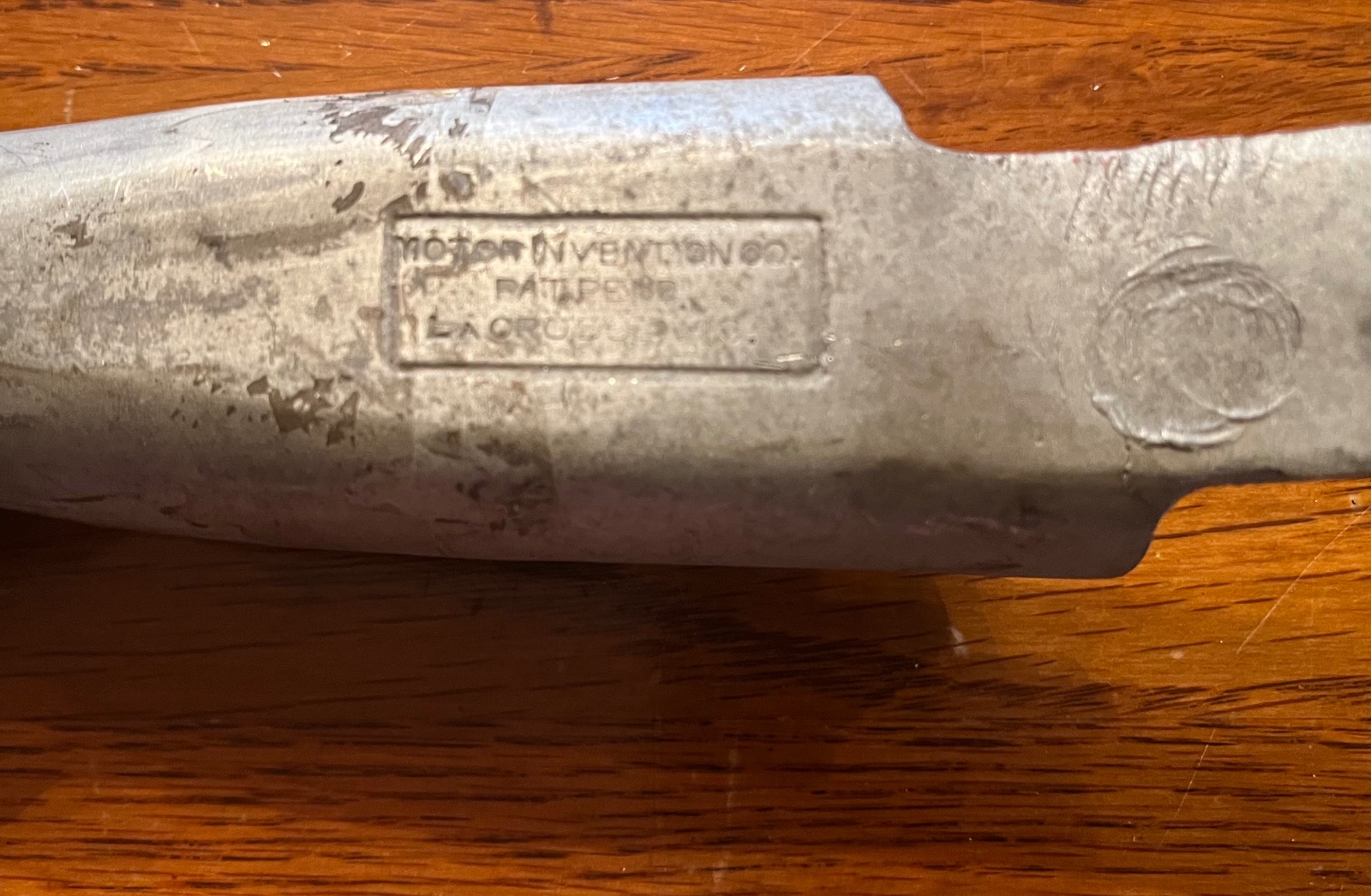 This is a really neat cast aluminum carburetor heat pipe made by Motor Invention Co in LaCrosse, Wisconsin.
