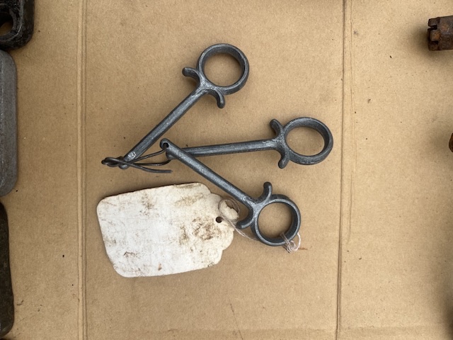 Stewart speedo, 1909-10 tie rod end, valve cover, body brackets, rear muffler half, 11-4 tail pipe, manifold clamps, tail light bracket, hood hooks, front perches and speedo gear are all sold.
