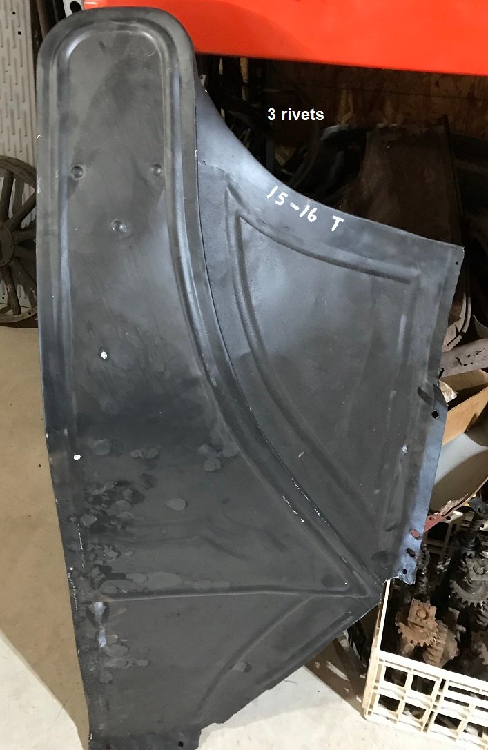 I believe this is a 1915-16 right front fender (3 rivets) Has some rust through an the running board end, weld om the front tip & rust through the seam of the side & fender portions . Also there is some overall roughness to the finish, zoom in to see. $50 not sure about shipping this. Is in Coal Valley IL, just off I-80 in US Hwy 6 Also have an early 1915 right front fender posted https://mtfca.com/phpBB3/viewtopic.php? ... 31#p344331