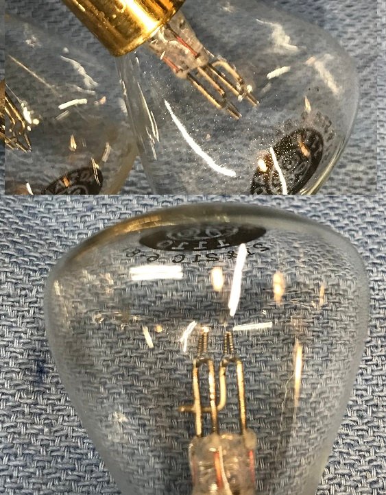 All the bulbs are NOS & have dual tee-pee shaped filaments at equal heights as original. They are 6-8 volts and 21-21 c.p. & fit a headlight base socket. Boxes 1, 2 and 3 each have 10 bulbs with silver color base. Box 4 has 10 bulbs with brass color base over steel. Box 5 just 3 or 4 brass / steel base bulbs and box). I tested all the bulbs for proper continuity so they can be used. The c.p. isn't really bright enough for night time driving but could be good for a brake/tail light with appropriate socket & wiring. They make a nice display item.