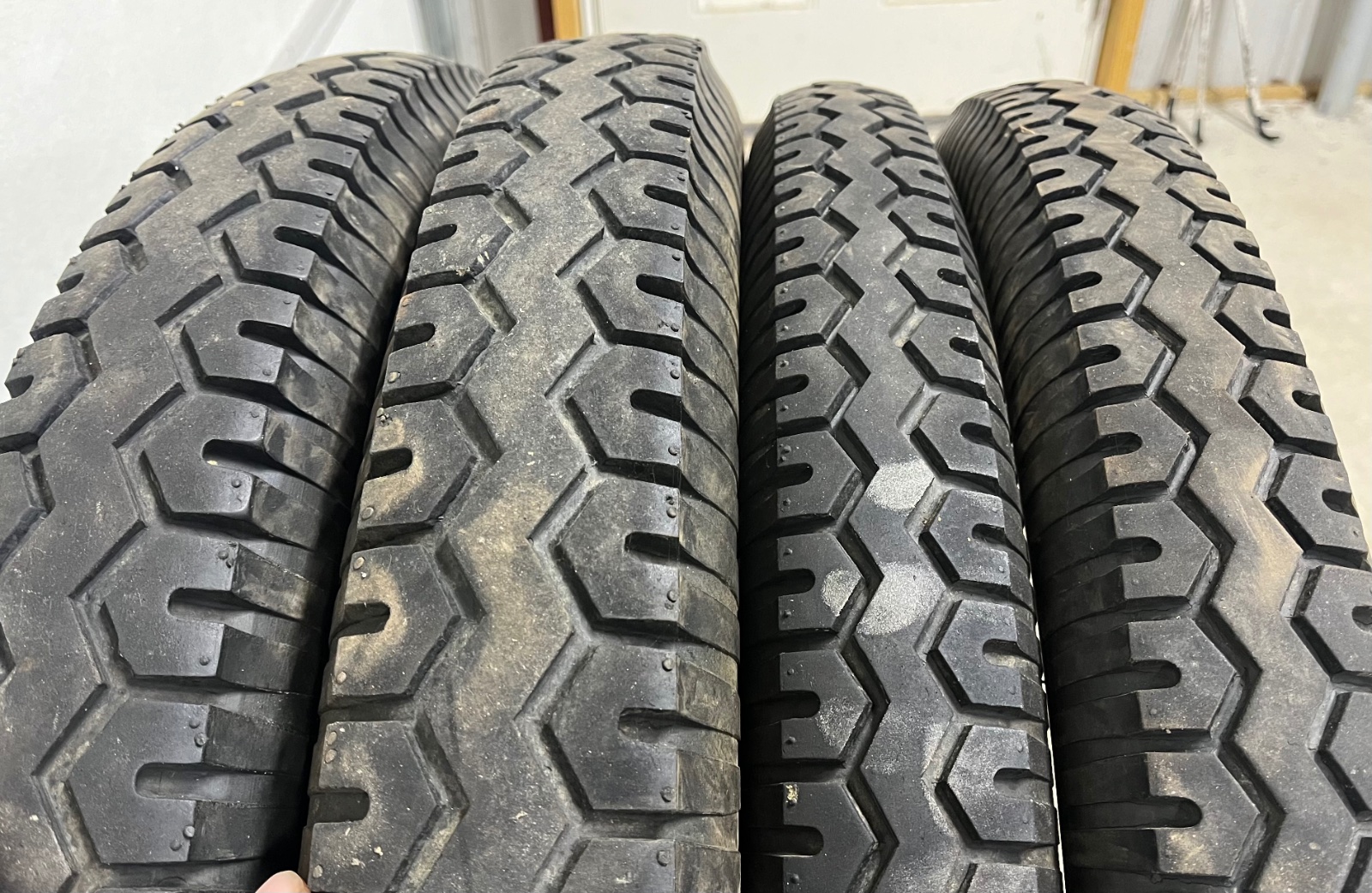 These tires are about 15 years old. They have about 5/32” to 6/32” of tread remaining. I removed them due to some sidewall cracking. They would be good to use as rollers or for a car that just goes to the ice cream stand a few times a year. The tubes all held air when I removed them.