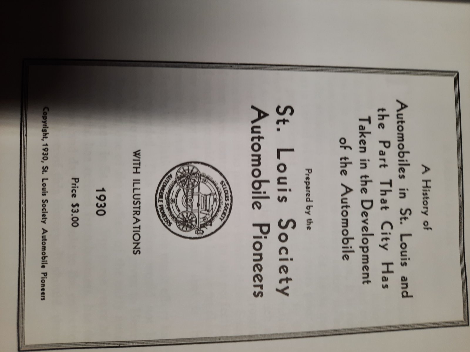 According to historians this was the only major US city to produce a book of their own recollections. It includes history and events on the first cars in and around St. Louis. Races, inventions, breakdowns, production and challenges.