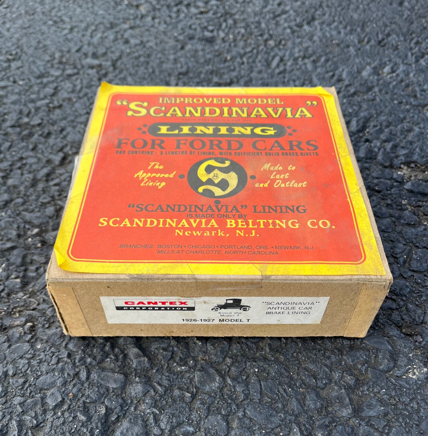 This is a new set of cotton Scandinavia 1926-27 transmission band linings and rivets. Made years ago by Cantex.