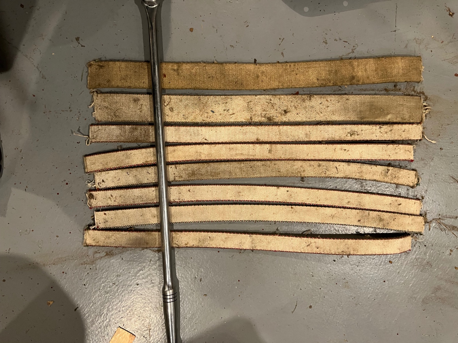 Just got a can of cotton linings in a bunch of stuff I bought. There are 6 narrow linings and 2 wide linings so there are two sets for either type of brake drums. They’re a little dirty from being in the can but I think they would clean up and be ok.