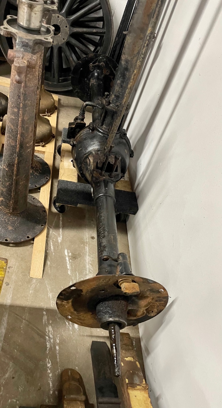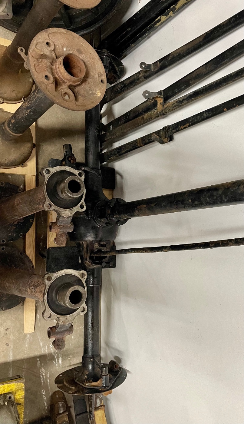I have a large drum Ruckstell axle complete with shift lever assembly, MINUS hubs and brake shoes. Drums are included. Typical dirt and grease. Needs restored.