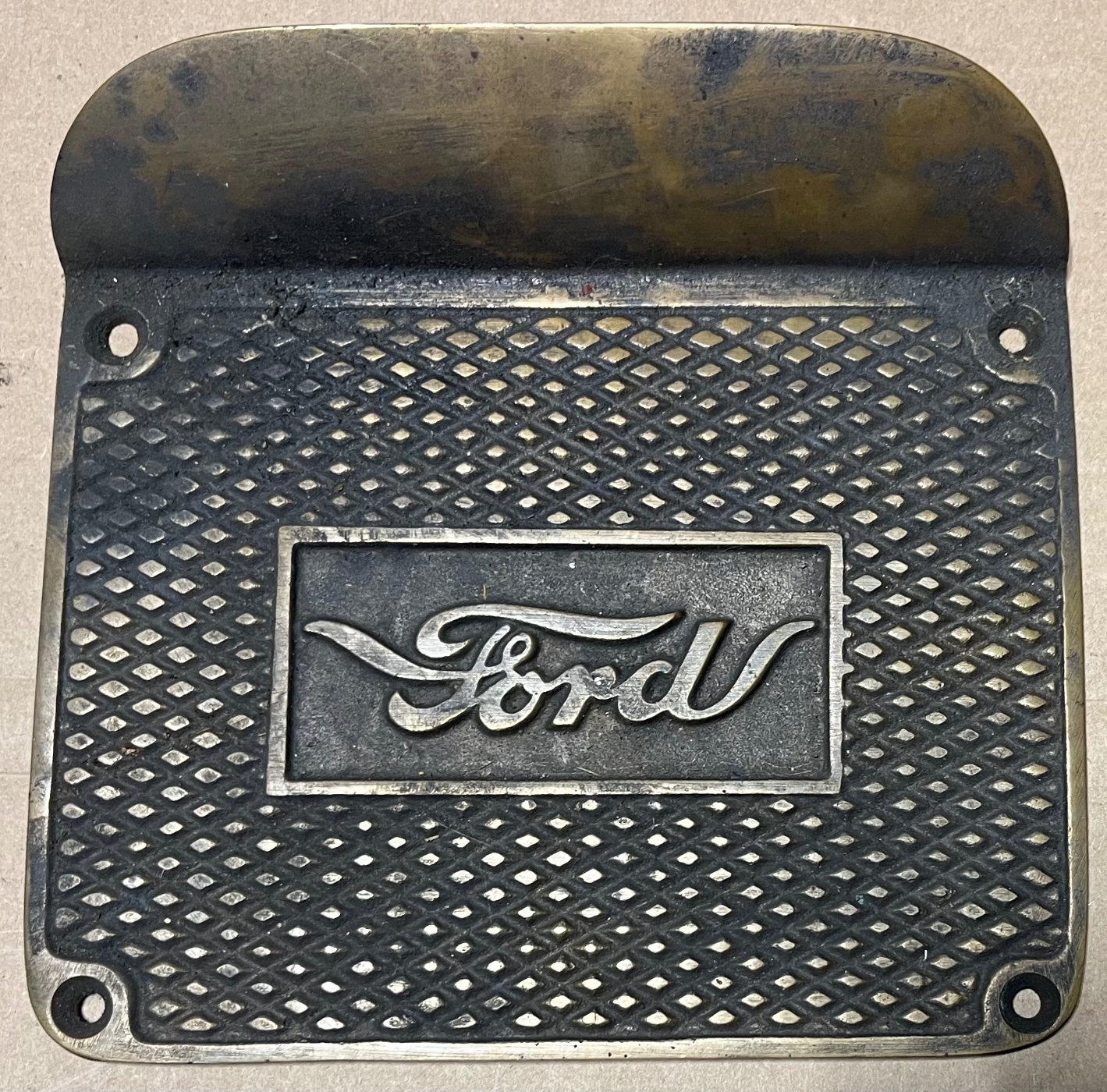 One Older Reproduction (Heavy) Solid Brass Step Plate. Never mounted, dirty patina. $65.00 plus shipping Lang’s 1-800-872-7871