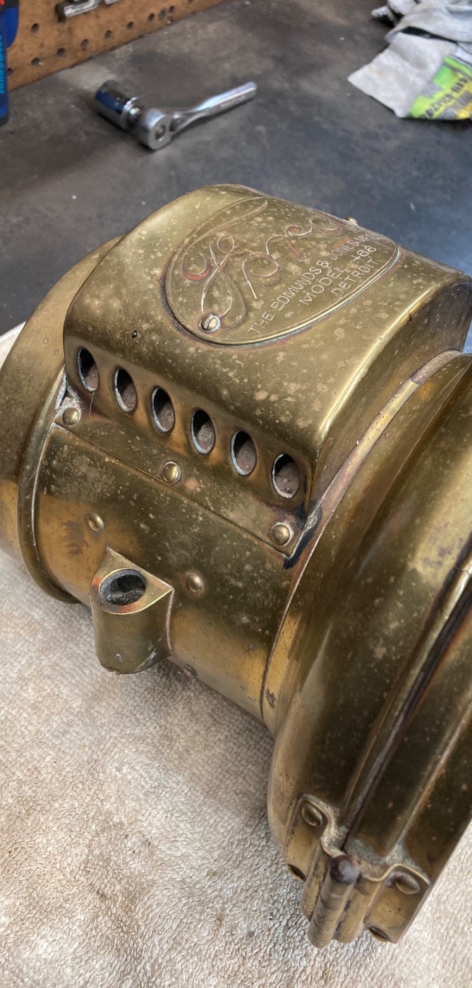Pair of E&J Brass headlights model number 66. Both are brass, one is painted black, both have the burner bases in them. One of them has the lens in yet. Both headlights have some dings and dents in them, they both have the original reflectors in them yet. $1500 for the pair. Prefer text message to 419-217-8884.