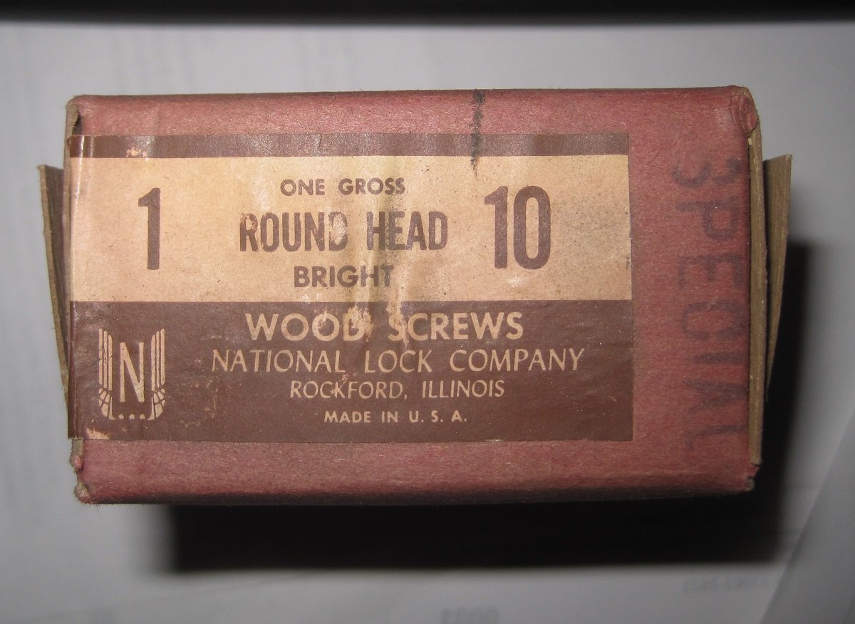 Free: I have about 8 boxes, each containing 1 gross (144 pcs) vintage Wood Screws, No. 10 Size, with Slotted Pan Heads, 1" length, made of plated steel. Length measured from bottom edge of the head to the point at the end of the shank. The box says these are "round" head but to me they look like "pan" heads, maybe the meaning has changed over the years? The box also says they are "shiny" but the plating has dulled with the passage of time. You pay shipping and they're yours.