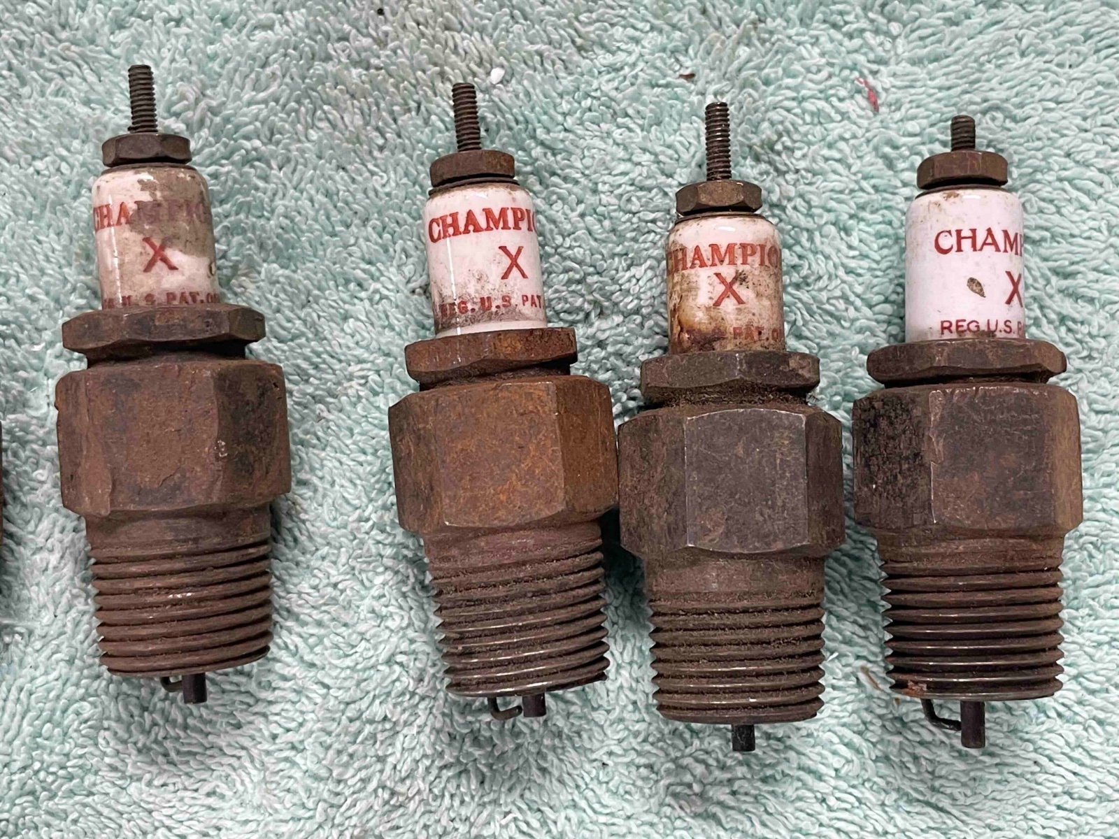 I believe 6 of these predate the brass top plugs and are appropriate for early Model Ts, 1/2" pipe threads. $50 the lot of 8 pieces, 48 state shipping $10.