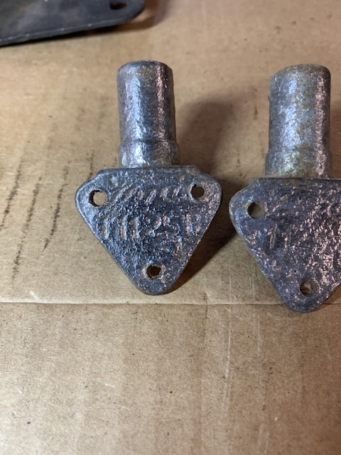 They are the fittings that go in upper tanks of radiator the fasten the brace rod to. If you look you can see the Ford in them. $20 each + shipping. Email me at address in pictures.