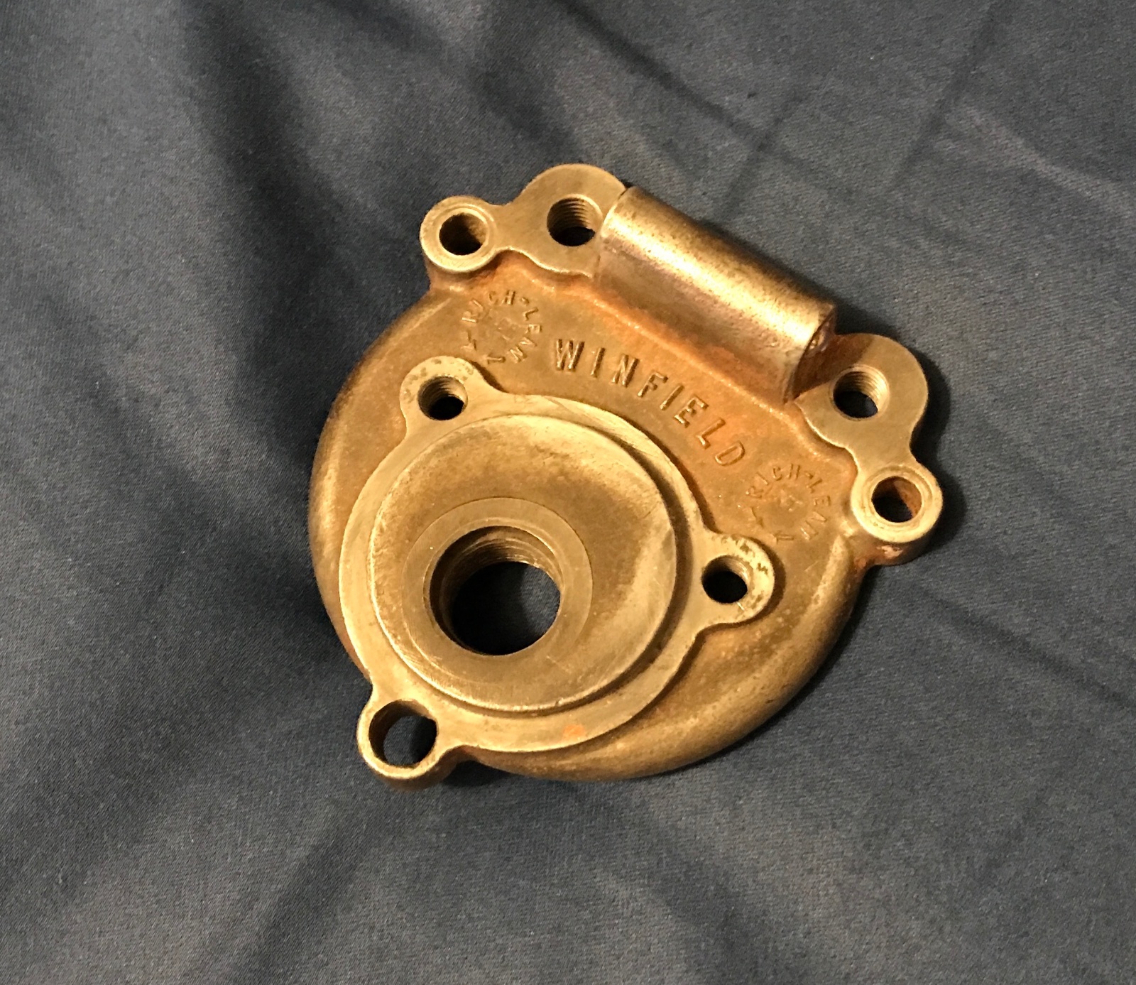 Nice hard to find original Winfield S,SR float bowl cover. No repairs, or cracks. Perfect threads. Spring loaded adjustment knob balls still clean and working. $75 includes shipping.