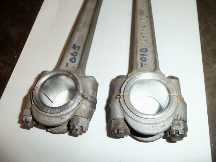 also have 2 "HEAVY" connecting rods that are re-babbitted and bored to -.005" diameter and -.010" diameter ... the -.005 would be a simple fitting process to use in an original engine with some wear on the rod journals ...Gene French