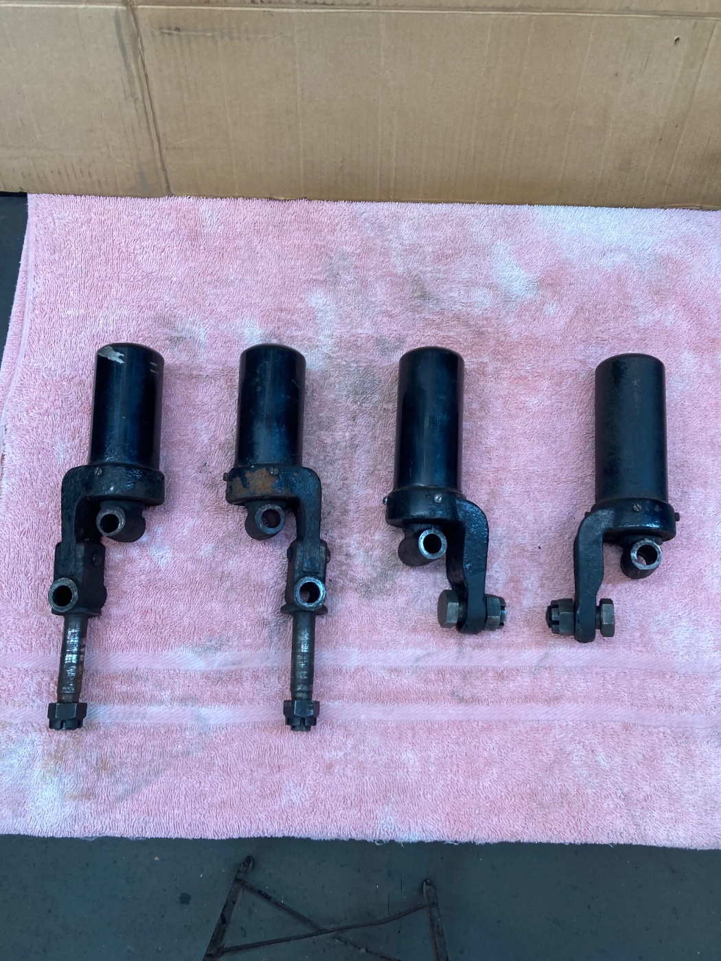One set of accessory shocks. I don’t see any markings on them anywhere to tell me the name brand. I took them off my 1914 touring earlier this year, therefore an early model T with the wishbone on top of the axle. good condition, $600 plus shipping to the lower 48. The best way to reach me is by text message. My number is 419-217-8884.