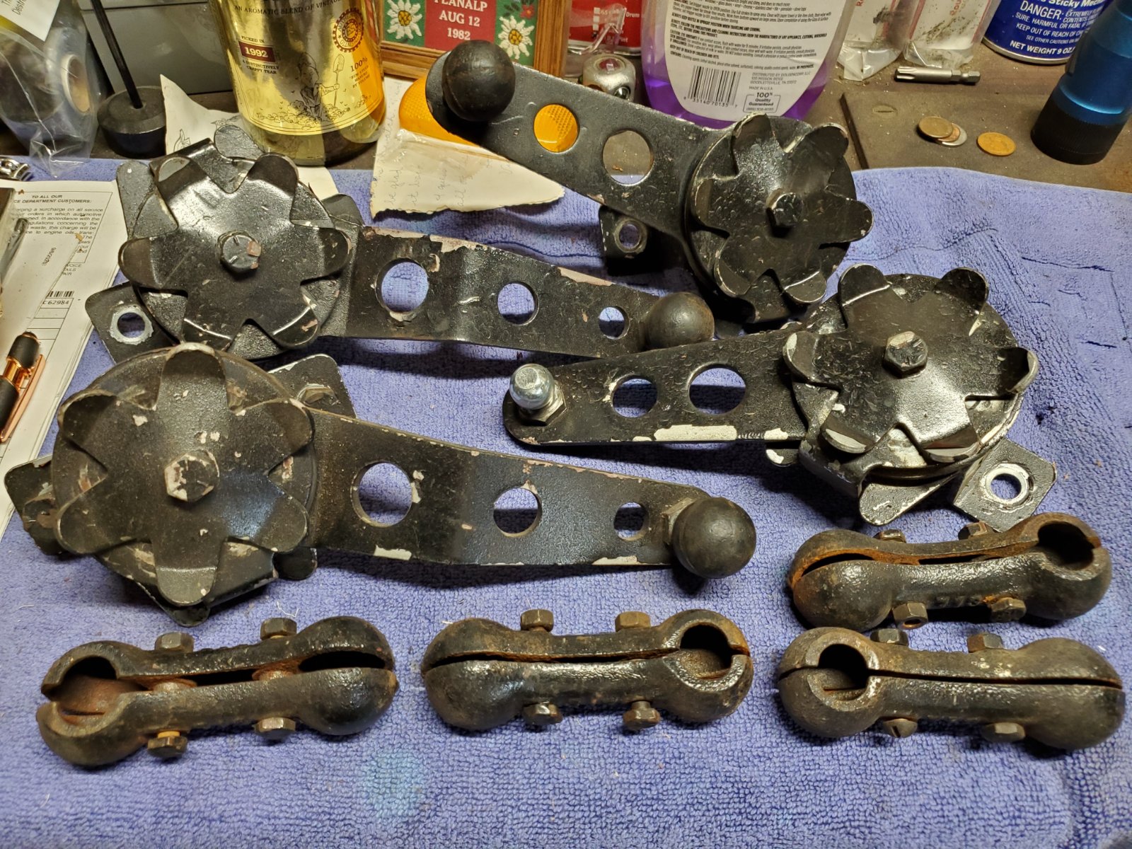 Set of 4 friction shocks could be adapted to a T speedster. Longer pair 7" center bolt to ball, shorter ones 5.5" center bolt to ball. No identification as to make. Asking $125.00 plus $20.00 shipping.