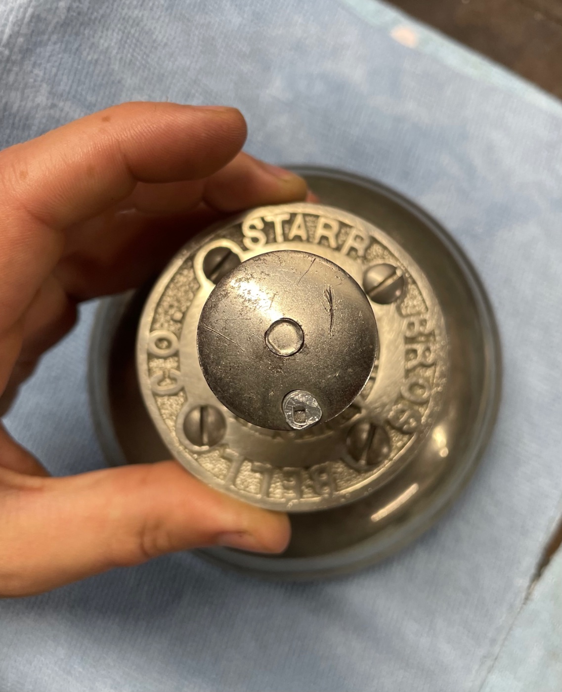 This is a beautiful Starr Brothers, Bermuda Bell, mid-19 teens. Not a cheap later reproduction this has a nice cast name plate. Works well and sounds beautiful.