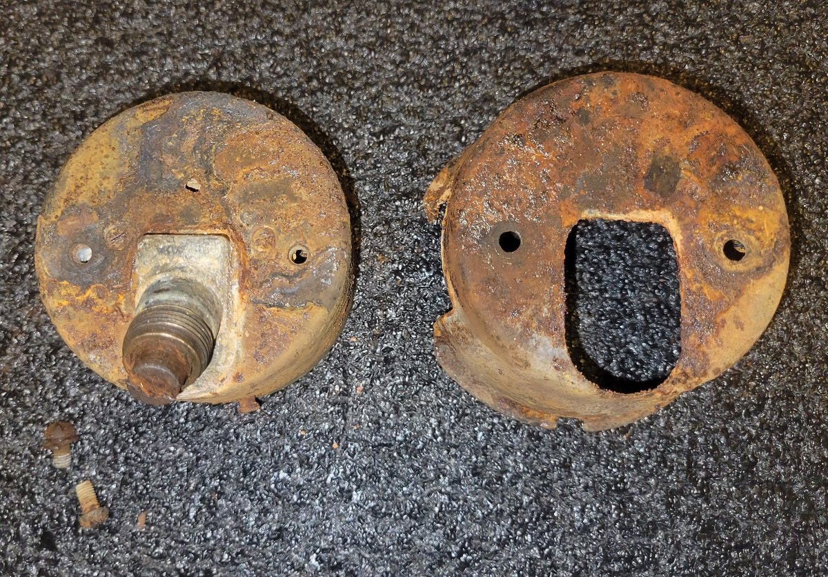 Free: what's left of a Stewart dash-mount speedometer, appropriate for a 1920-1925 Model T Ford, if I'm not mistaken. It was left in a bucket that filled up with water for several months, resulting in a speedometer that is mostly junk. Maybe some of the brackets, etc., or brass gears can be salvaged I don't know. It's yours if you pay for shipping.