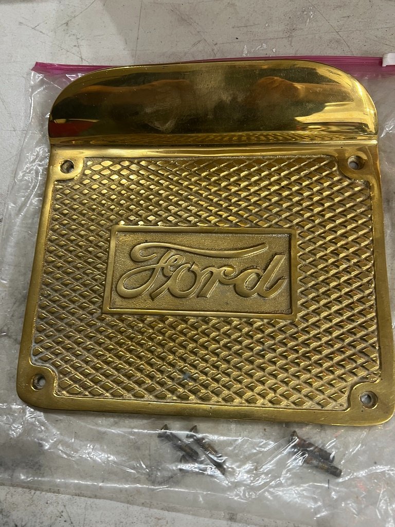 Not to step over on anyone, I just found 2 brass script step plates I am not going to be using on my under construction speedster. These are only available after the one above is sold and paid for.
