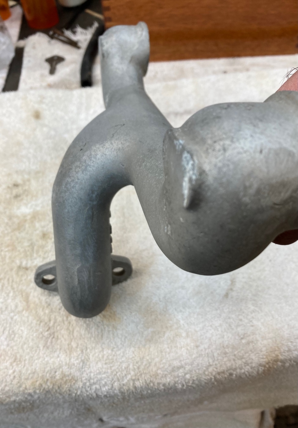 For sale 1909 to early 1911 aluminum dog leg intake. $200 plus postage to the lower 48. Contact me through text message, my number is 419-217-8884. Thanks.