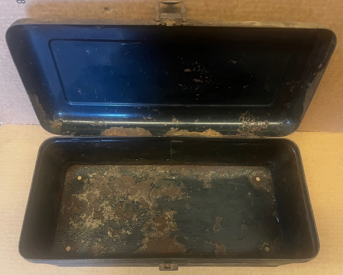 For Sale is a Running Board Tool Box in nice restorable condition. (No Key) SOLD plus shipping Lang’s 1-800-872-7871