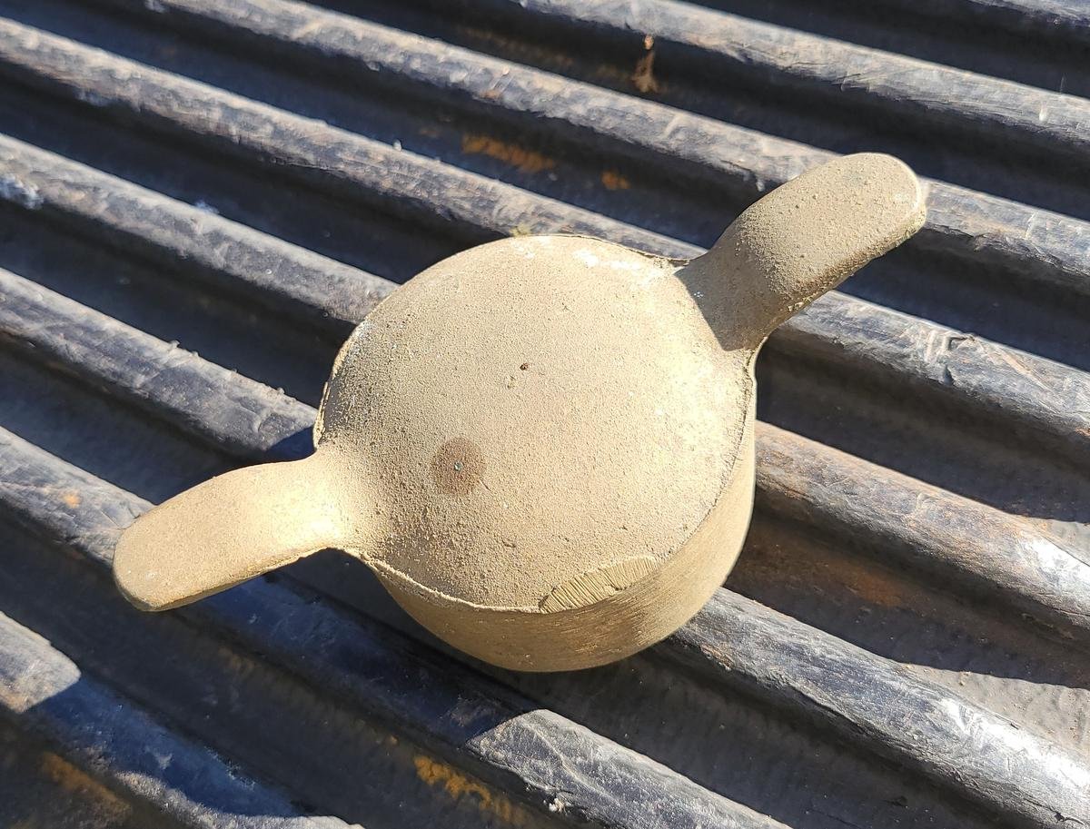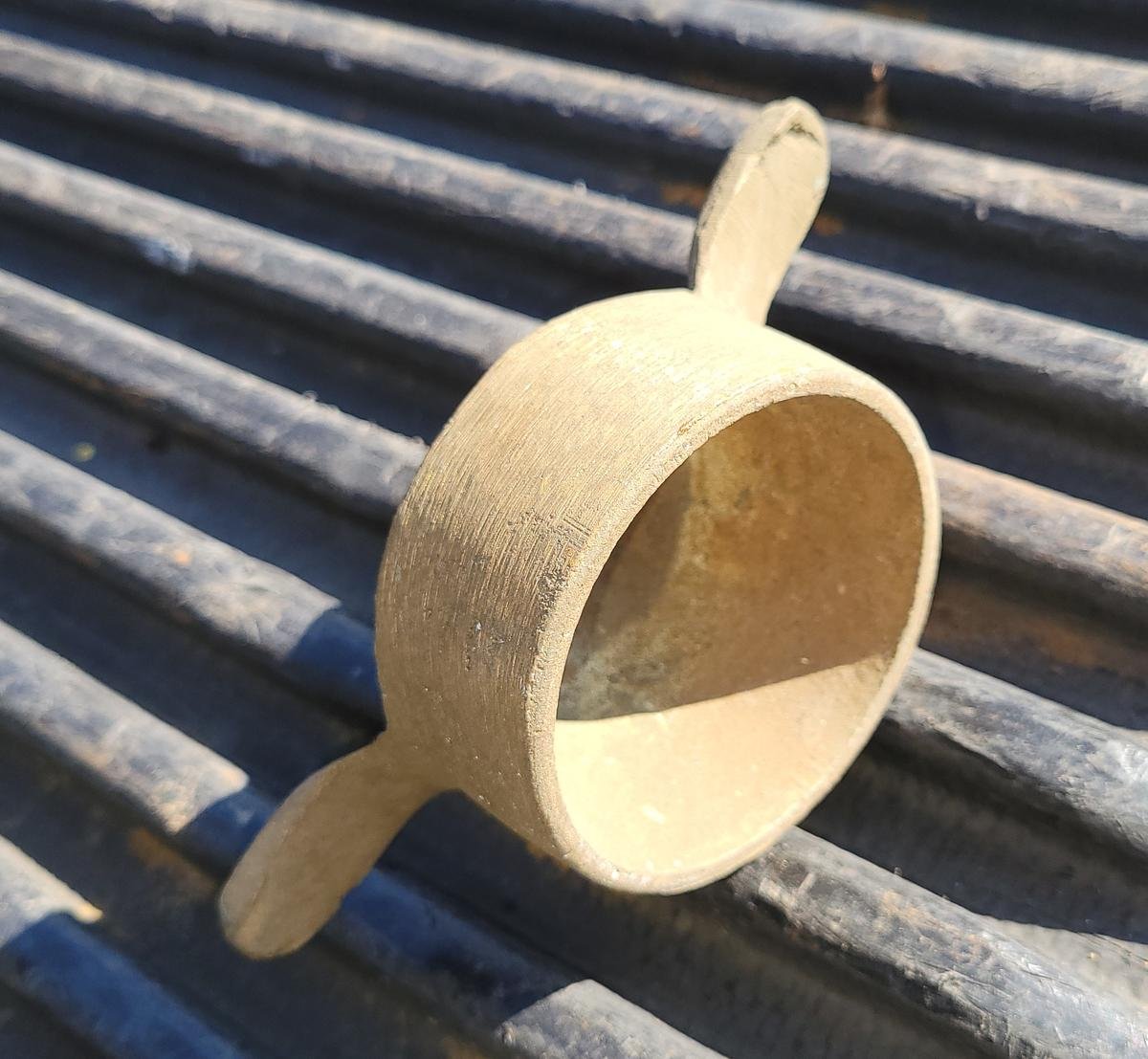 a raw unmachined brass casting, that I believe was intended to be a gas cap for a brass-era speedster. The OD is approx. 2.7", and the walls are 0.14" thick at the bottom. They taper inward so they get thicker as you go up, leaving plenty of room to cut threads. The overall height is 1.57" approx. Nice heavy cast brass, this should look pretty good with some work. I have 4 of these available. Asking $10 each not including Shipping.