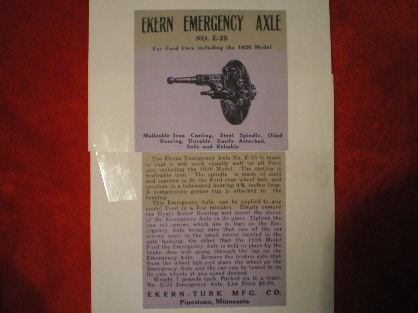 FS: EKERN Emergency Rear Axle Fixture (1909-1927)