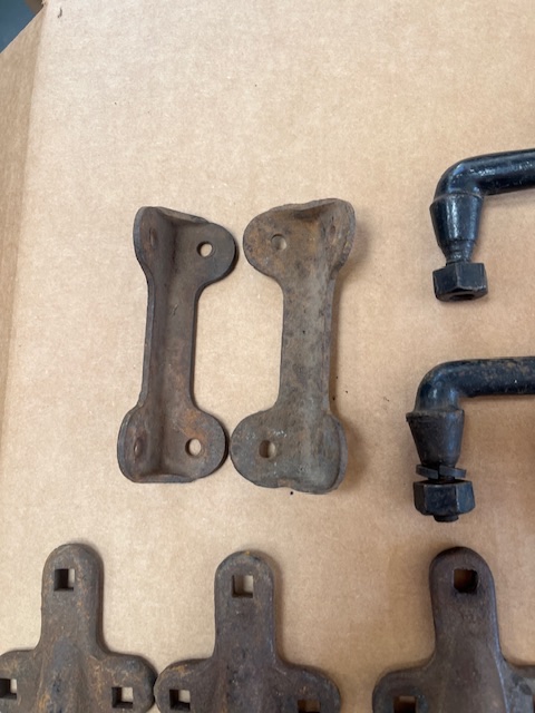 brackets, $35 per pair. Top iron to top socket brackets $30 each. Steering post brackets $150 each. Carb adjuster rods, 2 hole $125, 4 hole $225 each. All plus shipping. kdmks at att.net.