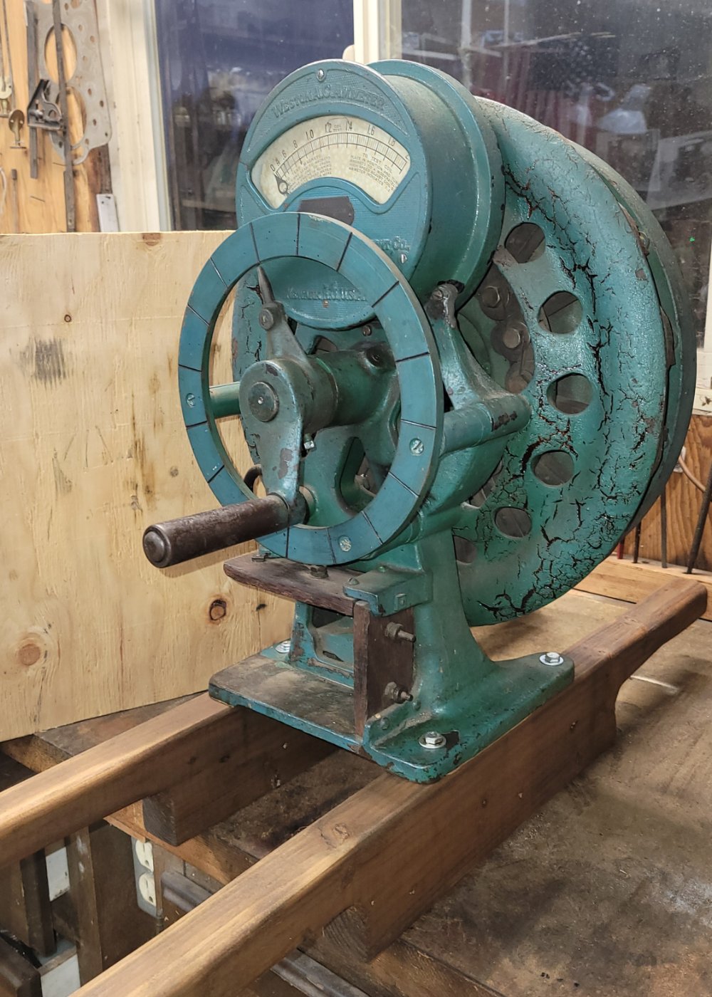 For Sale: Early Fairbanks Hand Cranked Coil Tester in original unrestored condition. The magnets have been recharged, the meter was recalibrated by Bob Cascisa, and the meter mounting point shows a repair. This HCCT works perfectly! It is very heavy and awkward to move, so handles were fabricated and attached to the cast iron base to facilitate two-person transport. Free pick up at Portland Swap Meet in April, or buyer arranges shipping. $800 obo.