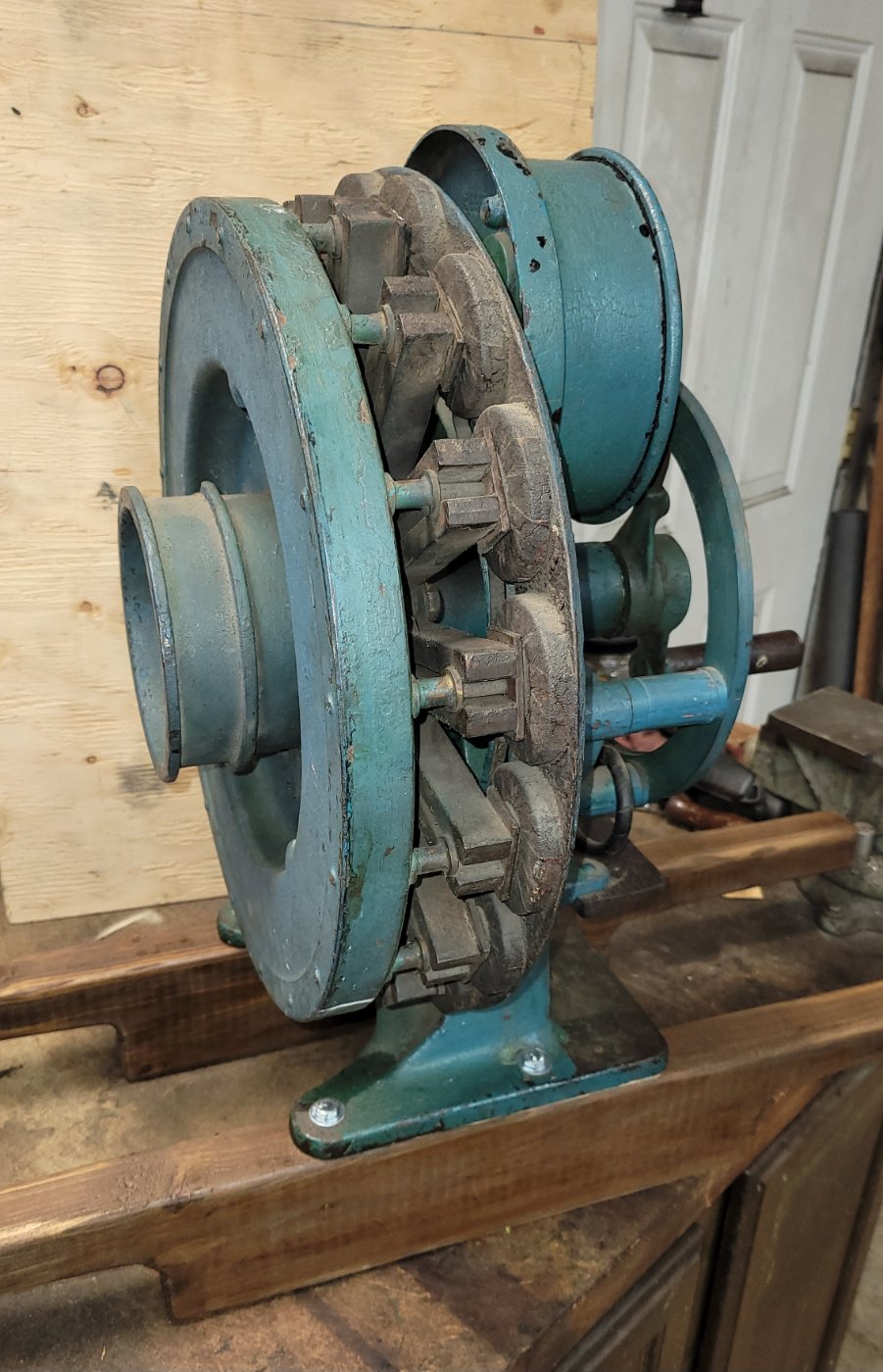 Looks to be set up for a flat belt so it can be motorized, Sweet! Jim