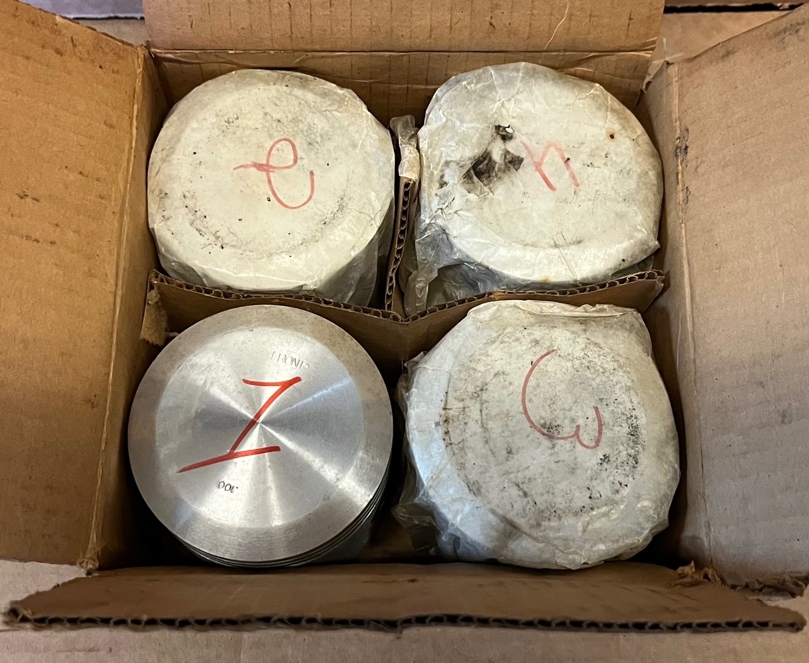 For Sale is an older “New” set of .100 oversize Pistons with pins. $125.00 set plus shipping. Lang’s 1-800-872-7871