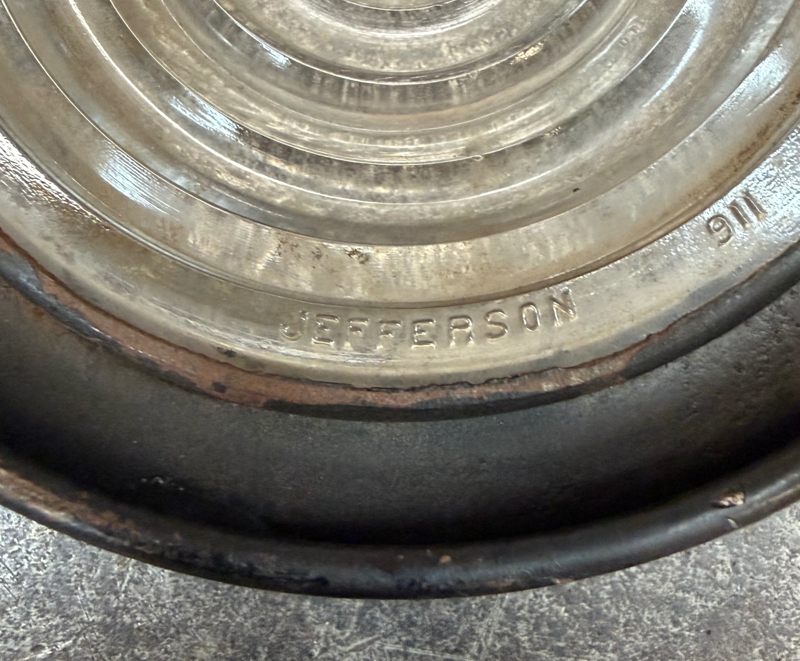 Please see the notes added to the picture. Marked JEFFERSON on the interior edge of the glass. I accidently broke the glass on one of my sidelamps. Trying to match the other sidelamp's door and glass design. Thank you.