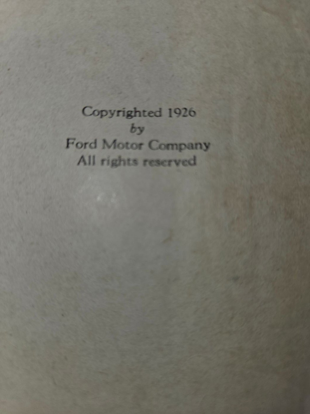 Re: FS 1926 Ford Manual – Original - New Price
