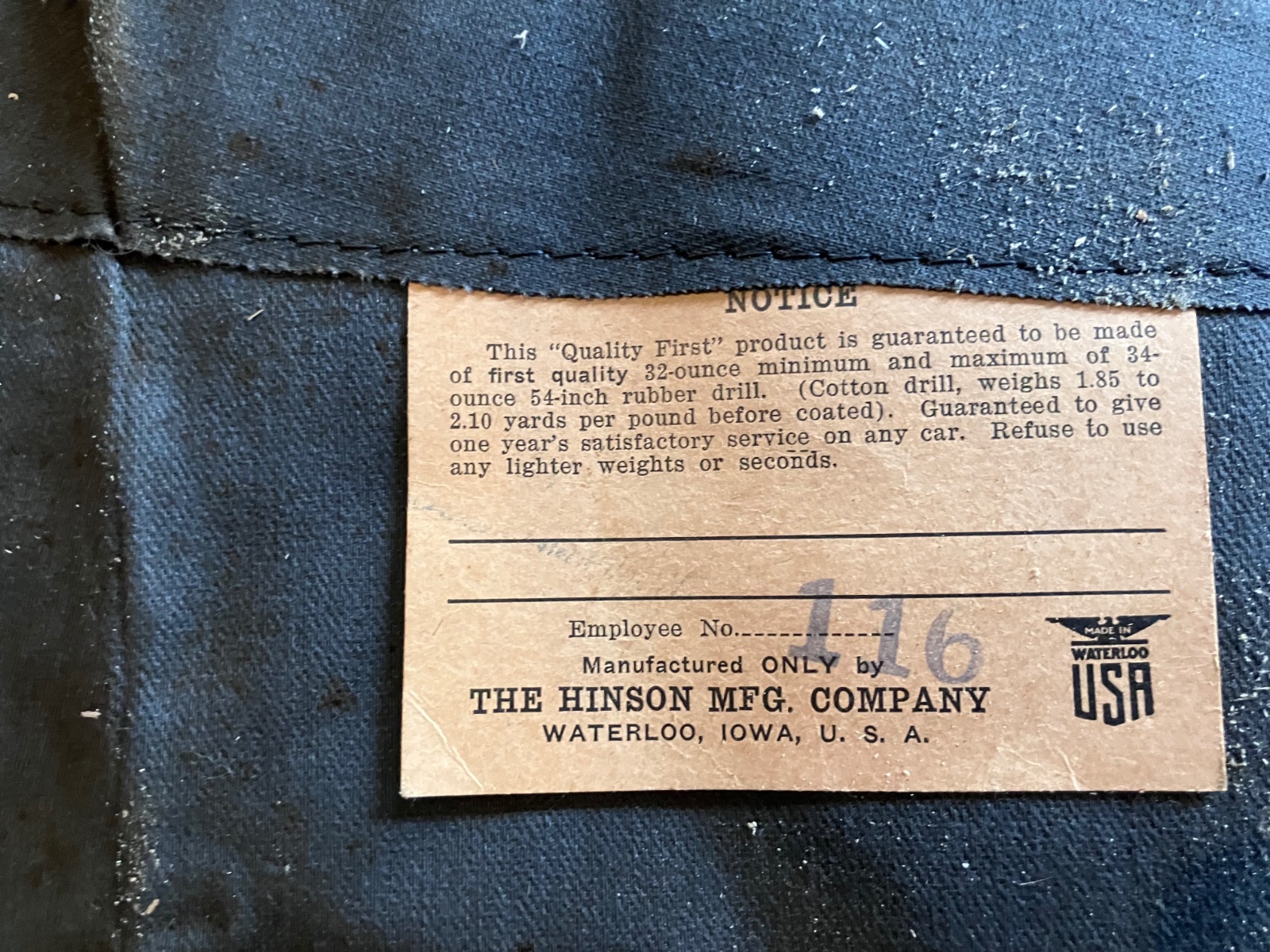This is a NOS 1914 touring top and rear curtain. It is of vinyl construction. This is brand new never been installed. It was made by Hinson MFG Company in Iowa. They were a large textile mfg company in WWII. They provided interior/tops for Model T's in the 60-70's. These pieces were stored away in climate controlled environment and were never used. The two rear windows glass is cracked but is easily replaceable with new glass by simply undoing the tabs. $1000 plus shipping