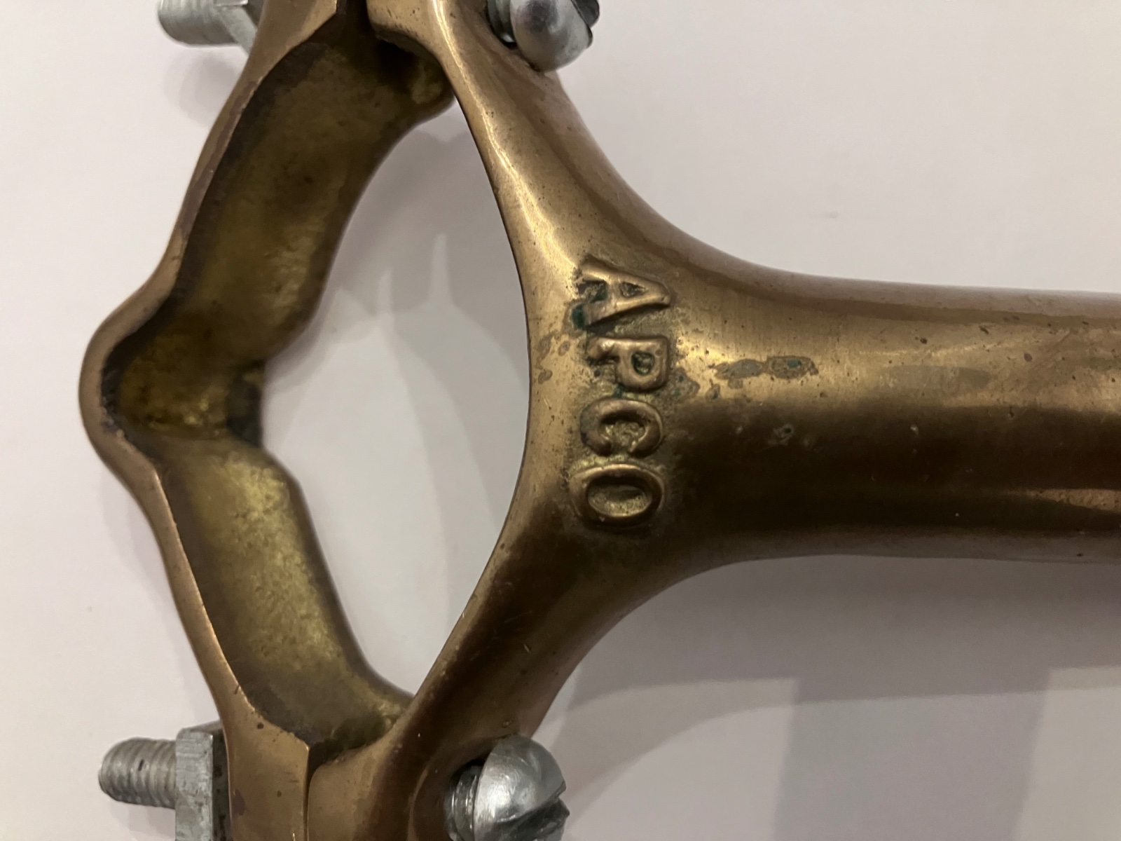 This is an original APCO accessory steering column bracket. Not a repo. It has the original casting PATD SEPT 1918 on the back side. Reproductions do not have this. Notice how crisp the casting is of the words APCO. Great item to add strength to your steering column, looks great on speedsters. Nice period accessory to add some brass bling to your T. $125 plus shipping