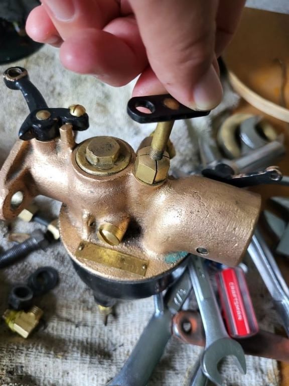 I'm trying to set this Kingston Carb, however, it wants to idle at a fast speed. I've cleaned it out and replaced the original needle/seat with the new ball bearing style. It wouldn't adjust right. I recently went back to the original needle/seat and it still idles fast. When I first started, I set spray needle at 1 1/2 turns, car started. I lowered the throttle to idle with spark fully retarded. I then adjusted the spray needle from lean to rich until I felt it was smooth running, but fast. I tried adjusting the throttle adjusting screw on top, still running fast with the lever bottomed out on post. Not sure what I'm doing wrong, any help would greatly be appreciated. I normally run a Simmons Super Power but found a crack in the casting that started to leak. Trying to get Kingston running for 4th parade.