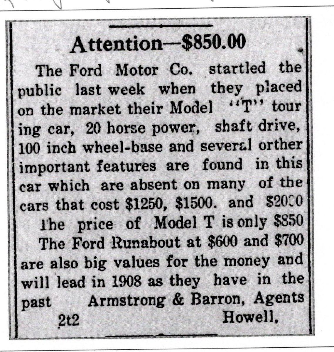 Announcing the Model T Ford was available for sale a week earlier, March/April 1908.