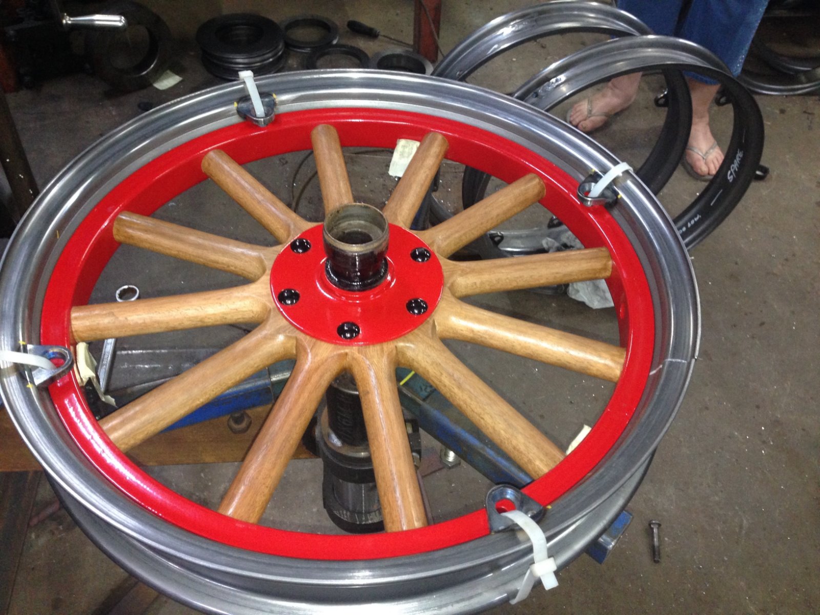 I contacted Steve Hood and he sent me some picture of one of his wheels. He sells them in plain steel for $275 AUD. For zinc plated add an additional $30 AUD per rim. Shipping is $104 AUD one rim, $250 AUD 4 rims. The exchange rate is 1.43 AUD to 1 USD. Lead time is 4-6 weeks.