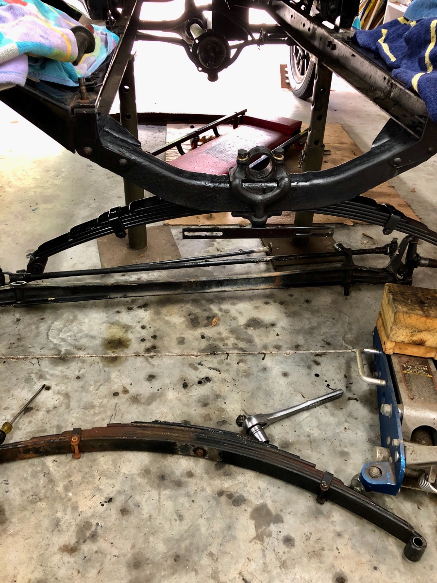 I replaced the worn-beyond-use front shackles on my Runabout. I was hoping that properly aligned perches and springs would bring the caster back to nominal. That did not work. I still have way too much caster and I need to study why before making a 4-ft bending iron.