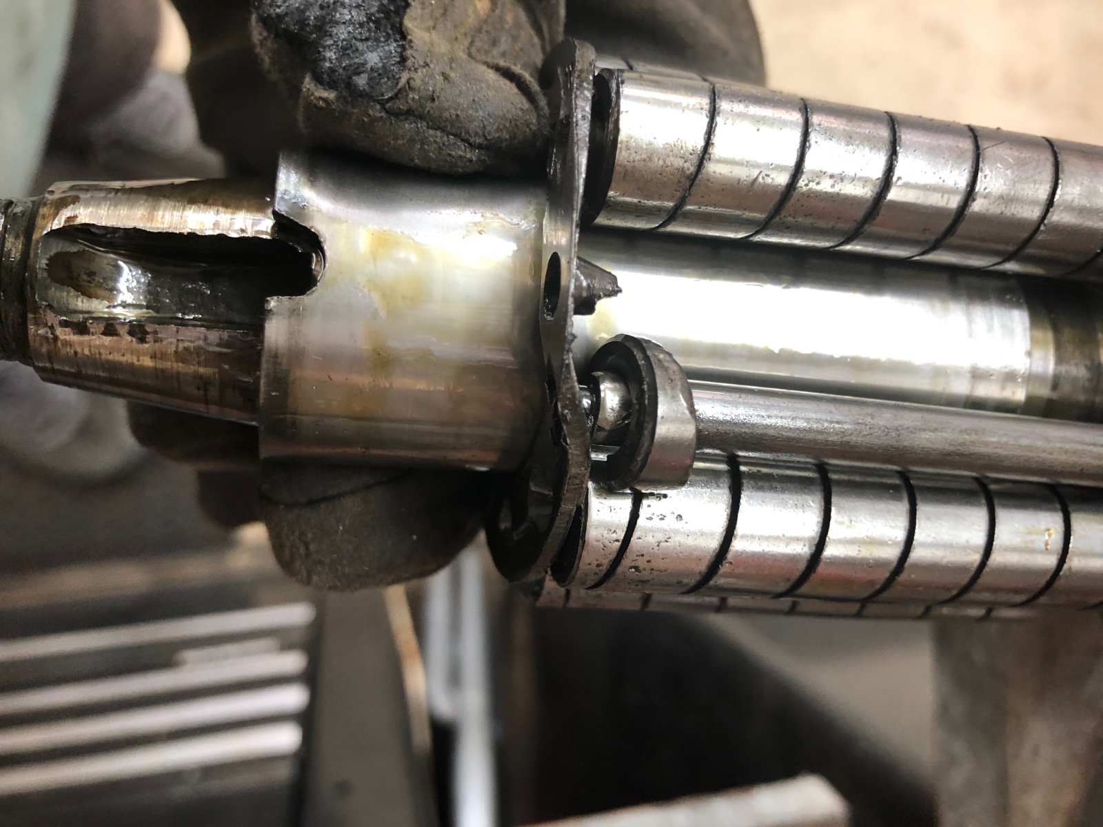 Getting to take down the ‘25 rear axle. The u/joint rocked with a suspicious click. So drove out what should be a long rivet :shock: