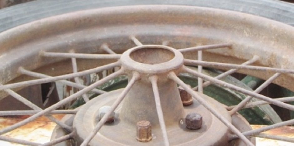 On a recent tour I parked next to this T that had adapters made to fit wire wheels to wood hubs, as I was casually looking over it,