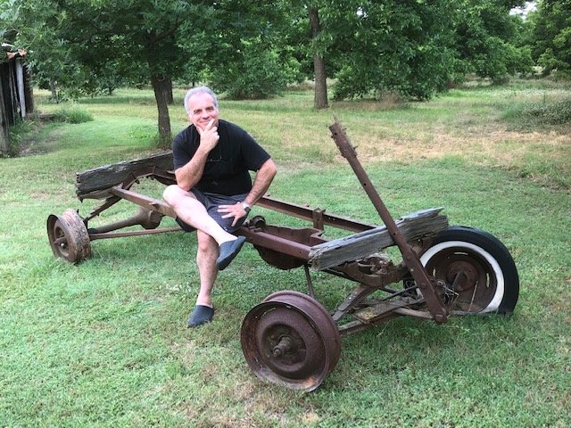 That is how my T speedster began its rebirth in 1968 central Texas. Many of the cotton farmers of the early years stripped their worn out T's down to the chassis, added a towing tongue and used them to haul cotton from the fields. At the time, I figured if they could make a trailer from a Model T then I could make a Model T from a trailer. Here I was negotiating with the farmer and in the background is the trailer I ended up using. We were sitting on a TT my brother and I were fixing at the time.