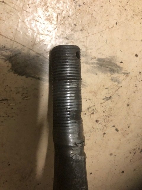 Update: Spindles are on. I ended up using a 1/2 inch drill bit and a drill press because my cheap adjustable reamer broke a tooth. The 1/2 inch drill bit seemed to work fine on both the spindles and the Steven's tool insert. Little to no movement on the spindle bolt. The mostly small rusty chassis replacement parts have all been repaired, extraneous stuff removed, cracks welded and at the sand blast/prime place. I discovered one front fender/front light mount is bent at the base. I think that I need to mount it to a stud and try to bend it back but it is already at the blasters so I will have to try to fix it afterwards.