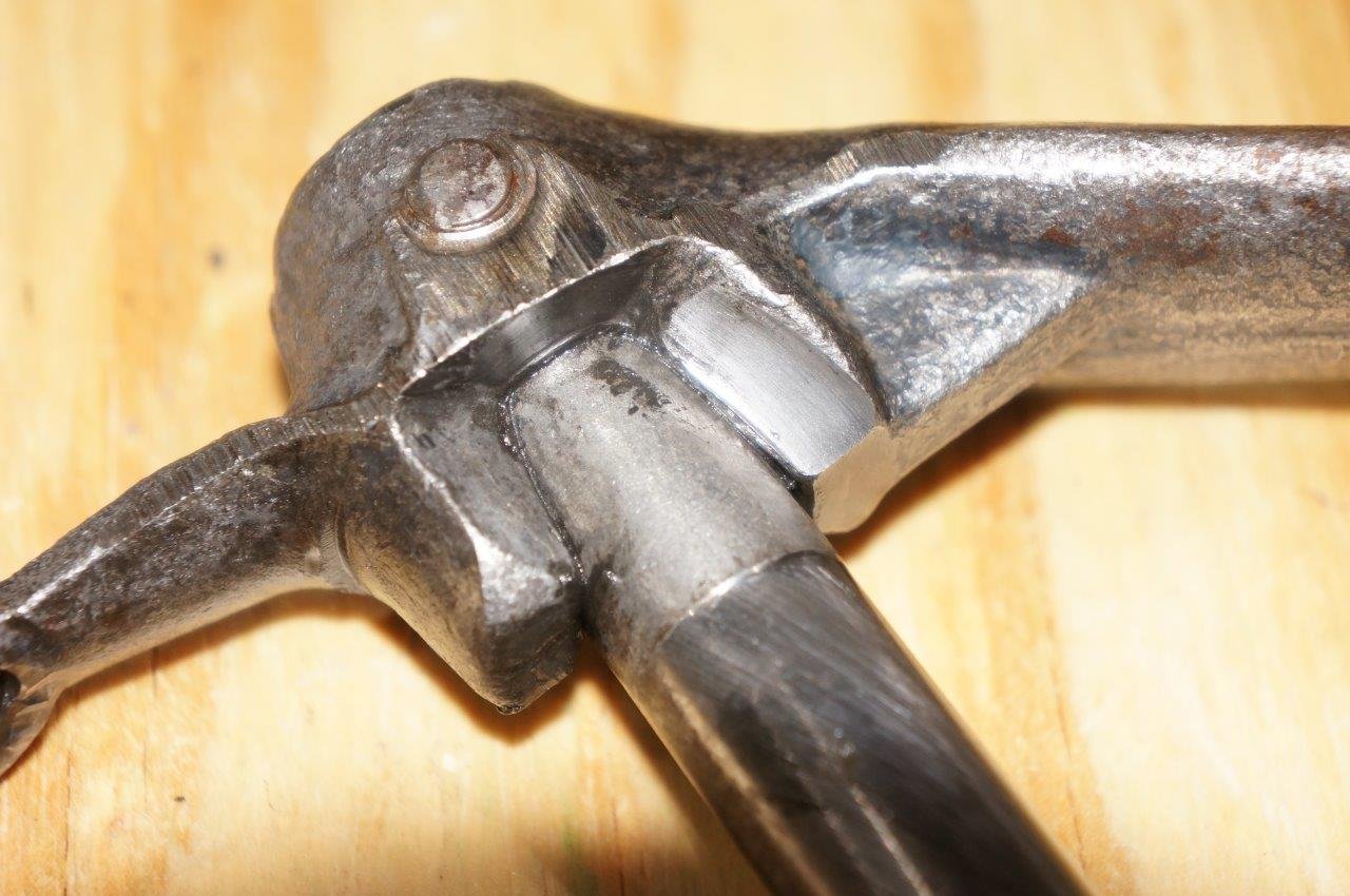 The clutch pedal on my 26 has excessive wear on the cam. I'm building up the surface with weld and then filing it to shape.