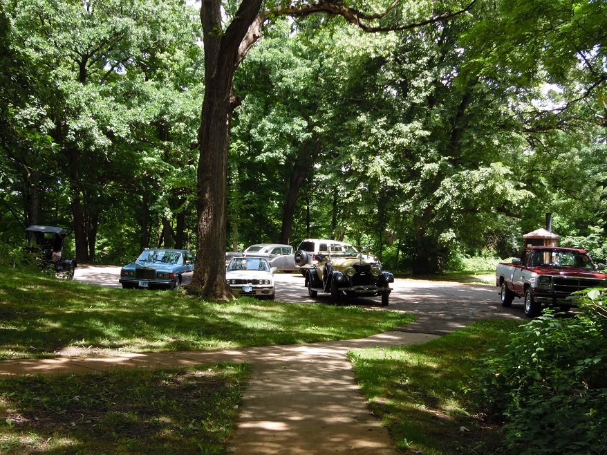 Everybody is familiar with Pikes Peak in Colorado. For those of you who think Illinois is flat as a pancake, I want you to know, here in Kane County, IL., we have our vary own "Johnson's Mound" which is the highest point in Kane Co. and rises to an astounding elevation of 867 feet above sea level! This is about 200 feet above the surrounding corn fields, so it is certainly a site to behold! So take that, Colorado! On a clear day you can see all the way to DeKalb County. Well you could if there weren't so gosh darn many trees in the way. At any rate, this summer a group of my car crazed friends of all persuasions, have gotten together bi-weekly at the picnic shelter at the top of Johnson's Mound for a "Social Distancing - Self Picnic". On the first picnic I neglected to make sure my low band was properly adjusted, and so I need a little "help" getting to the top. Here are some photos from past picnics. My T is the one with the rope attached to the front axle. Most of the cars that show up are from a different decade. If you ask the man who owns the blue Packard, he will tell you how he purchased the car at 14 years old with savings from his paper route. He gave $700 dollars for it, which was the market rate at the time.