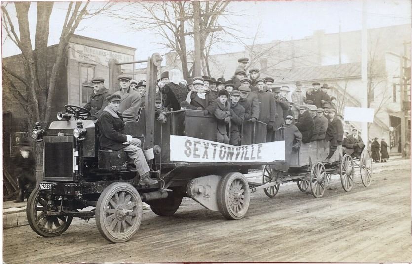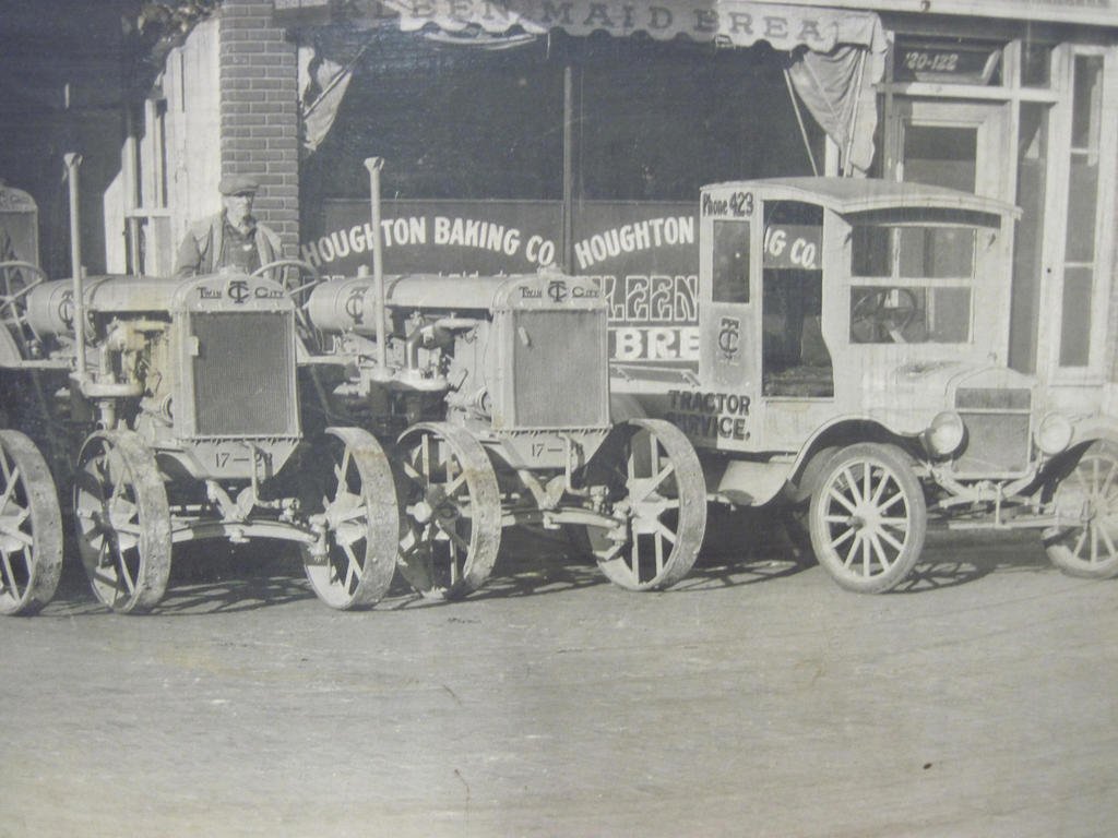 I would say the Harley is about a 1912 or 1913. The twins were belt drive previous to that. The enclosed chain drive truck looks familiar but I can think what is is yet. I'll do some looking.