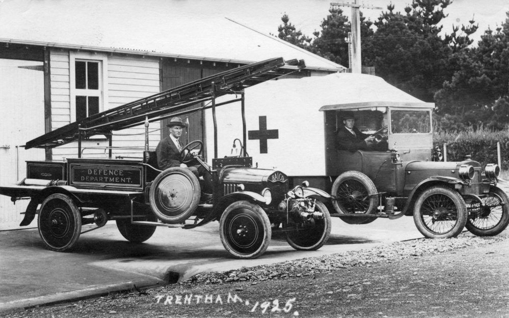 Intrigued by the fire engine found in the background of one of Grandad's slides (see my post at https://mtfca.com/phpBB3/viewtopic.php?f=2&t=15625 ) I had a look for Ford fire engines in Upper Hutt, New Zealand. Several Fire Brigades in New Zealand used Ford fire engines, so the design is not unusual here.